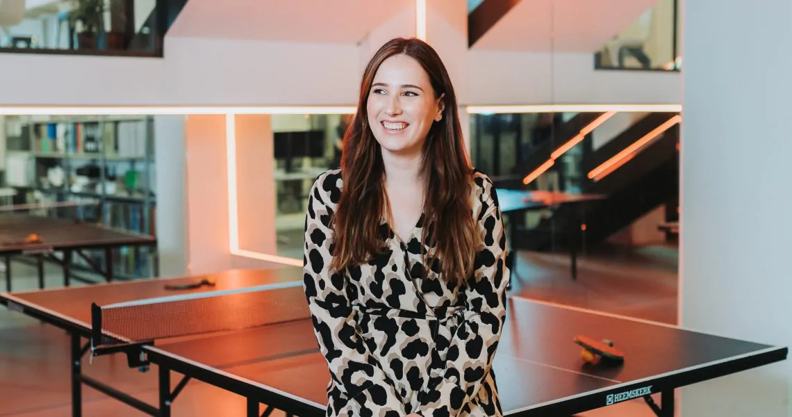 Oké, eerst even wat over mij: ik ben Emie Budde, 26 jaar oud (als dit artikel voor 9 december 2022 wordt geplaatst) en woonachtig in Zwolle met vriend en baby. En, de állereerste werknemer van Buro Aangenaam: een titel die ik met trots draag. Maar ik ben ook superblij dat ik inmiddels een heus team om me heen heb waar ik mijn woordgrappen op los kan laten.
